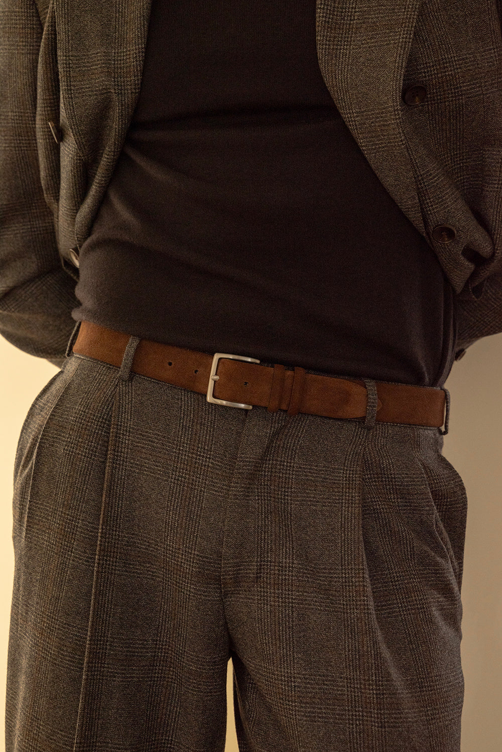 Cintura realizzata in vera pelle scamosciata, doppio passante in pelle.
