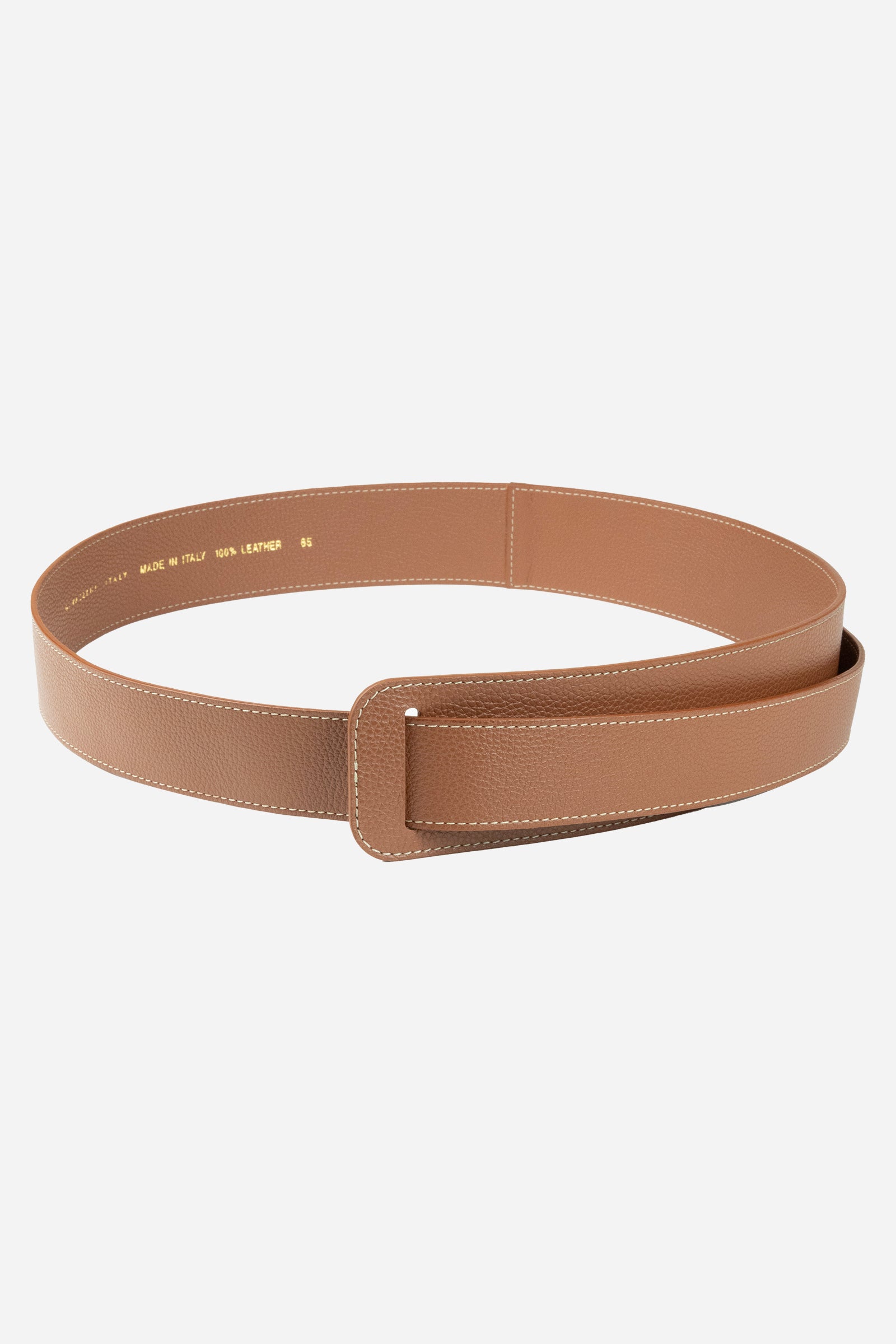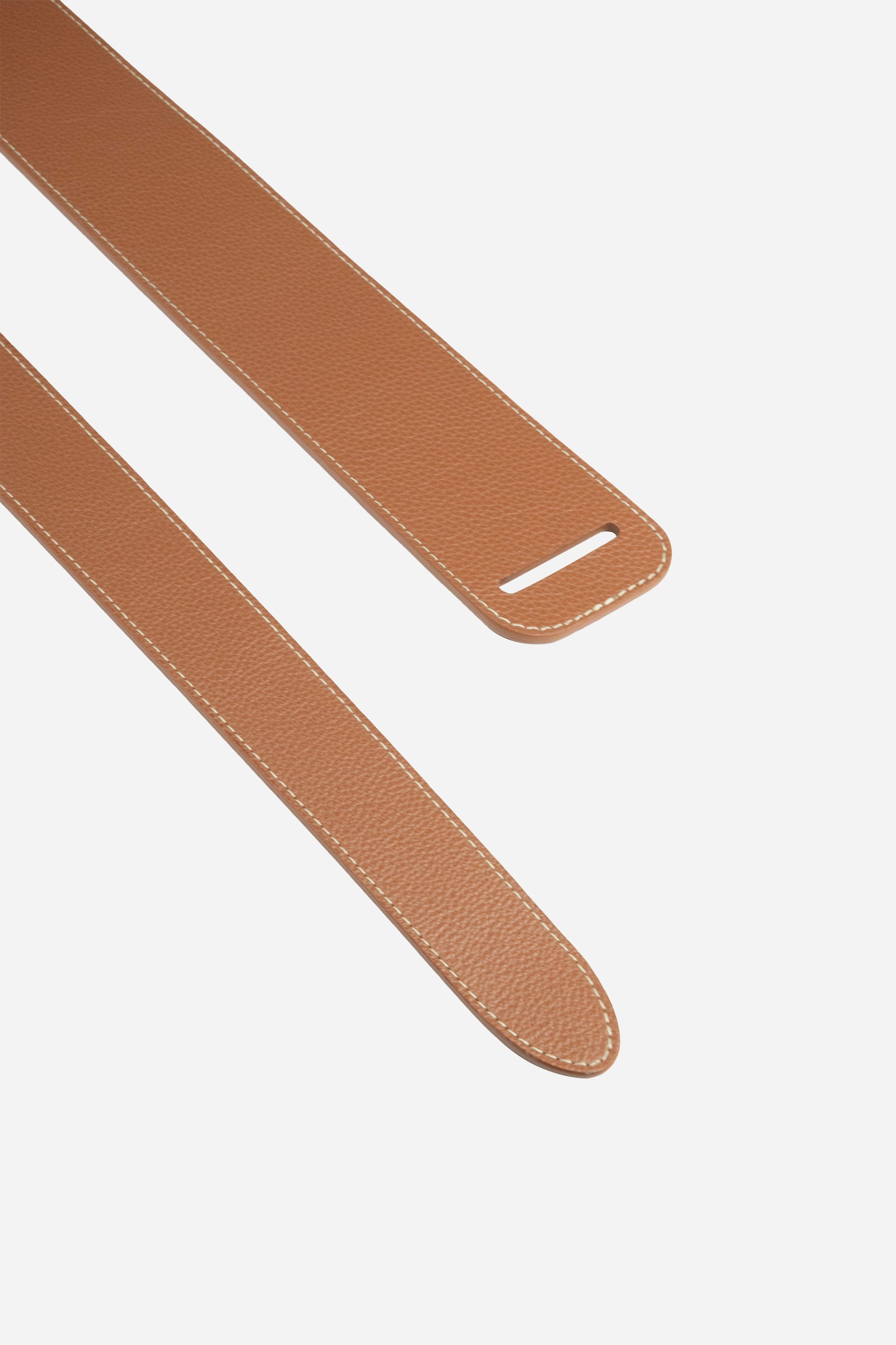 Passante inciso sulla pelle, cuciture a contrasto e puntale lungo.