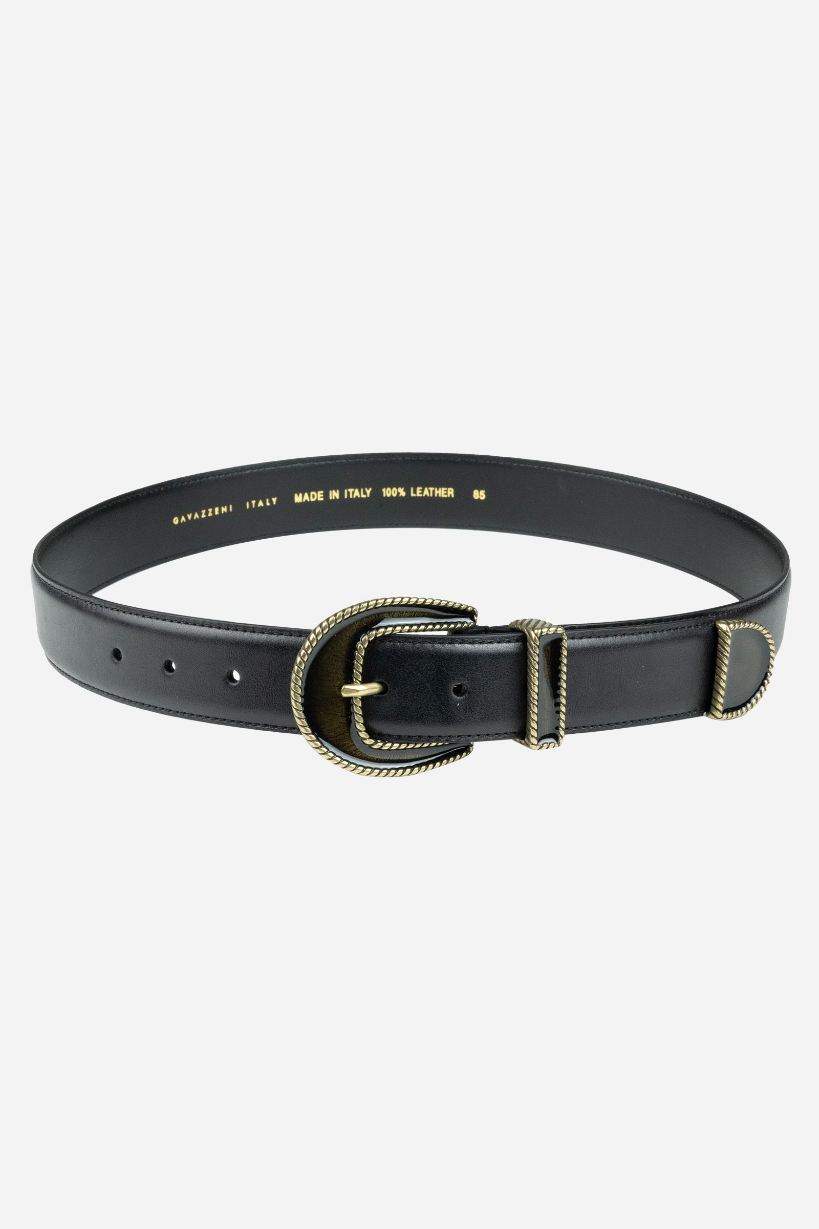 Cintura realizzata in vera pelle liscia, cuciture in tono.