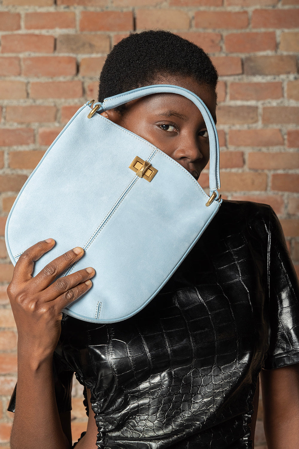 Eleganza senza tempo e funzionalità si fondono in questa raffinata borsa in pelle suede. La linea morbida e la silhouette moderna la rendono un accessorio versatile e sofisticato, perfetto da portare a mano grazie al manico in suede oppure a spalla con la pratica tracolla.
